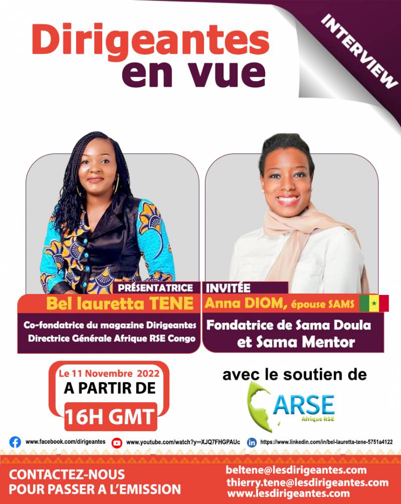 Cette solopreneure, qui a décidé de s’installer dans son pays natal, le Sénégal, sera reçue ce Vendredi 11 Novembre 2022 à l’émission Dirigeantes en vue https://lc.cx/v93gtn